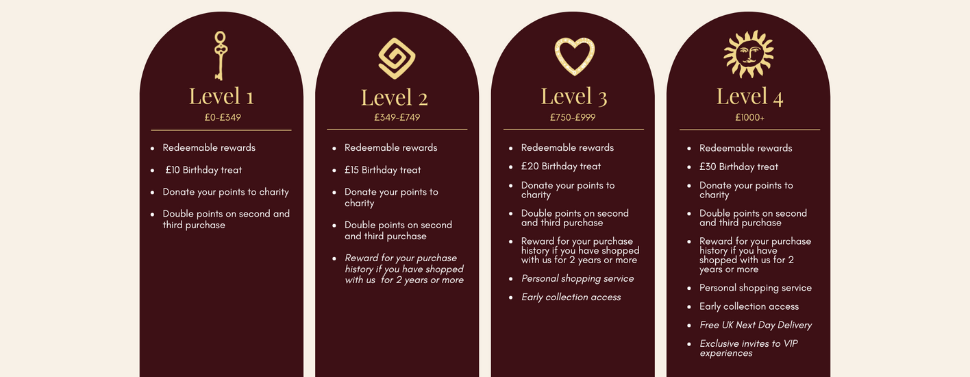 We have 4 tiers of membership, the more points you collect, the more benefits you will receive!